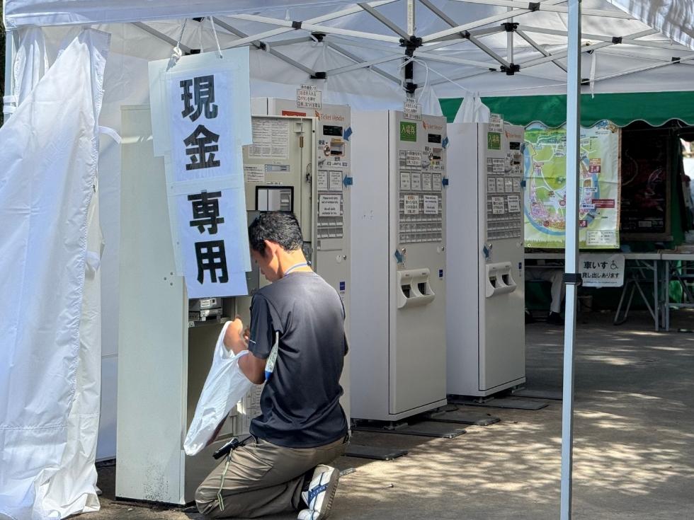 さらに、広大な会場に点在する複数の入場ゲートでの現金管理は、事前の釣銭準備における防犯上の懸念や、終業後の売上集計作業の長時間化など、運営側にとって大きな負担となっていました。